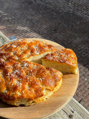 Bake until golden brown and a toothpick inserted comes out clean, 55 min - 1hr. Let cool for around 10 minutes in the pan, then carefully invert onto a plate. Peel off the parchment and let cool fully.