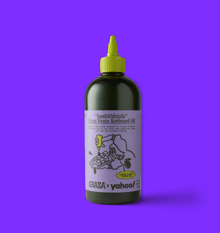 A bottle of “Shhhhizzle” Extra Virgin Keyboard Oil