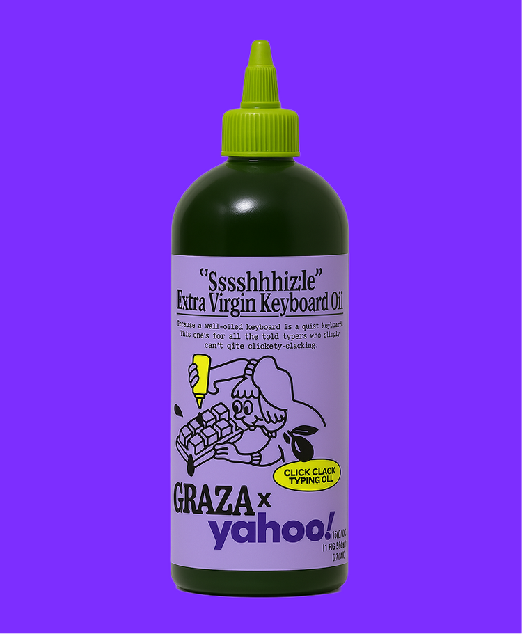 A bottle of “Shhhhizzle” Extra Virgin Keyboard Oil